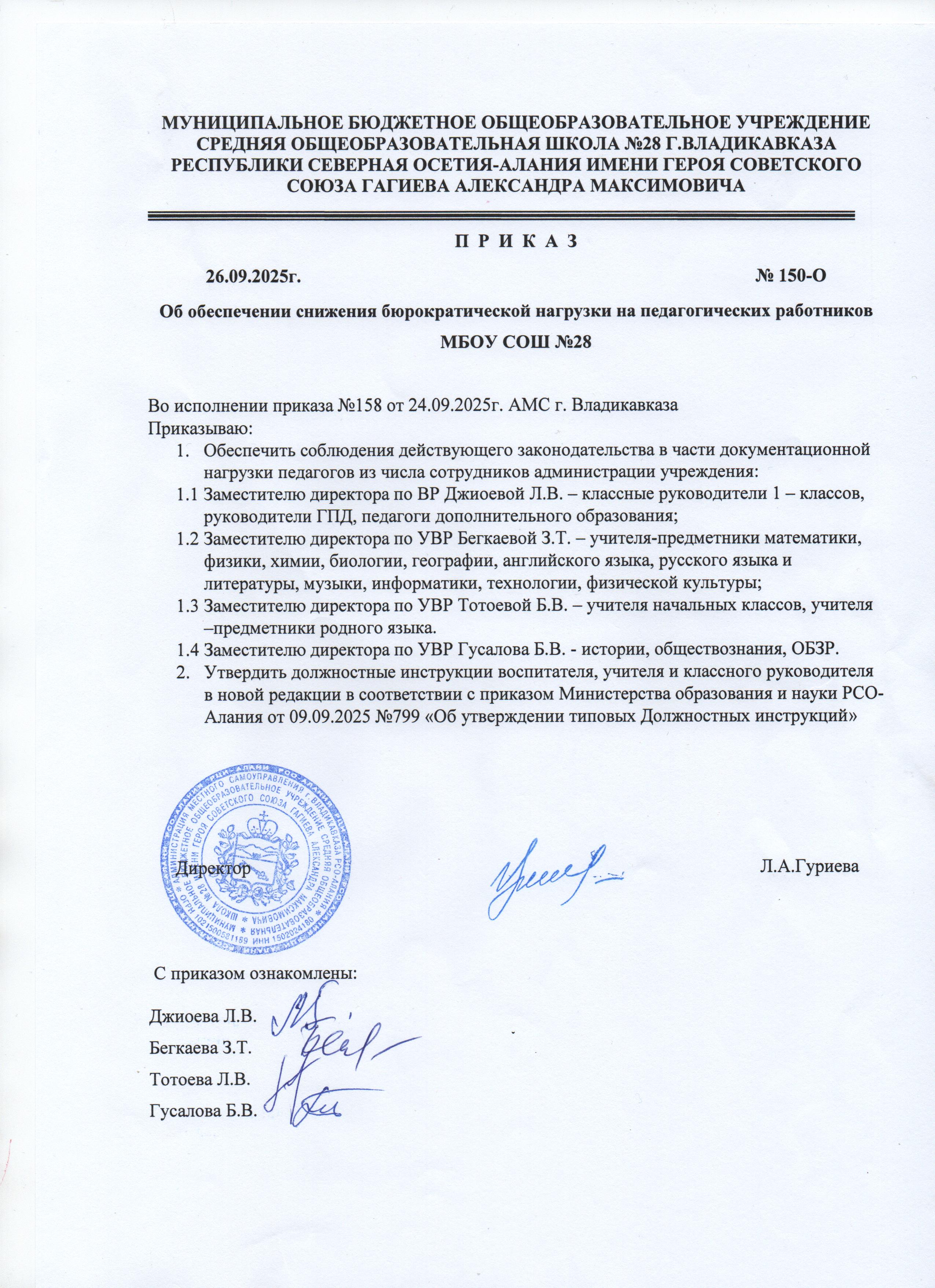 Приказ об обеспечении снижения бюракратической нагрузки на педагогических работников